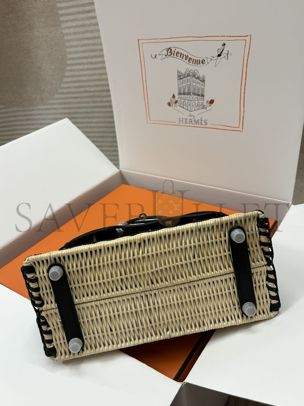 HERMÈS MASTER BIRKIN 25 PICNIC BAG BLACK SWIFT LEATHER AND WOVEN WICKER H082668CK03 (25*20*13cm)