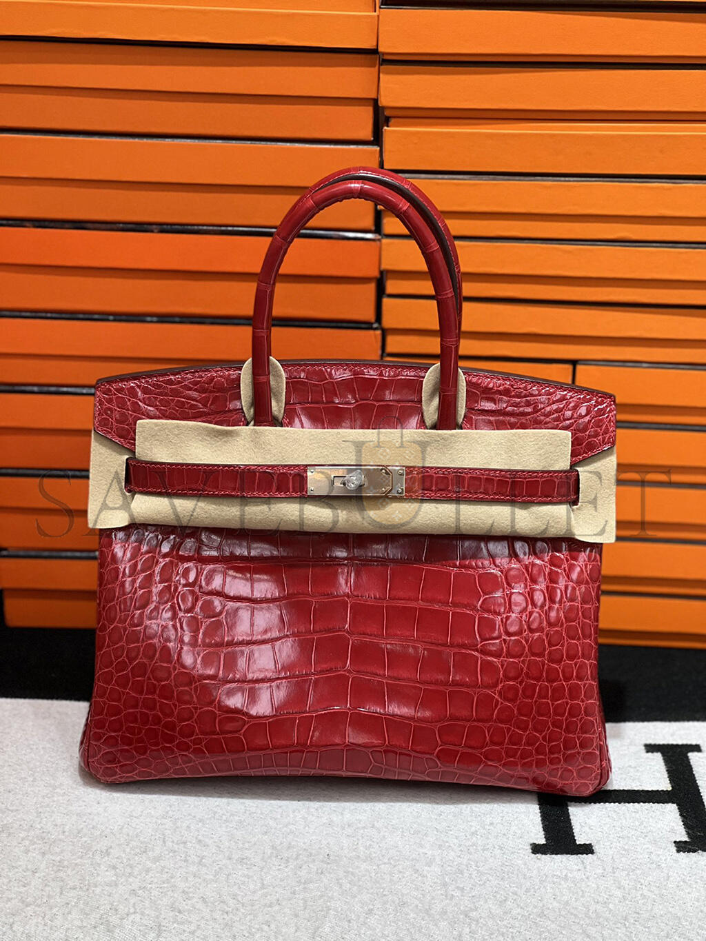 HERMÈS MASTER BIRKIN 25 CROCODILE LEATHER RED BAG SILVER BUCKLE H041354CK8V (25*20*13cm)