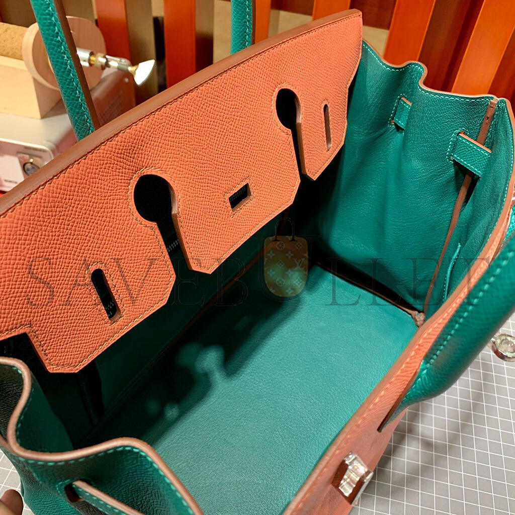 HERMES MASTER BIRKIN 30 EPSOM LOBSTER PINK AND PEACOCK GREEN SILVER BUCKLE BAG H028369CK70 (30*23*15cm)