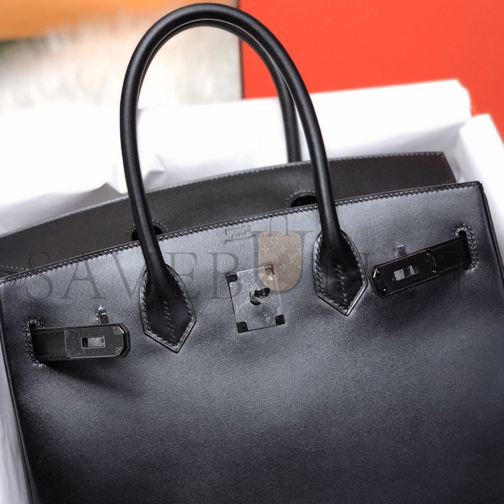 HERMÈS MASTER BIRKIN 30 BOX LEATHER BLACK SILVER BUCKLE H029281CK89 (30*22*15cm)