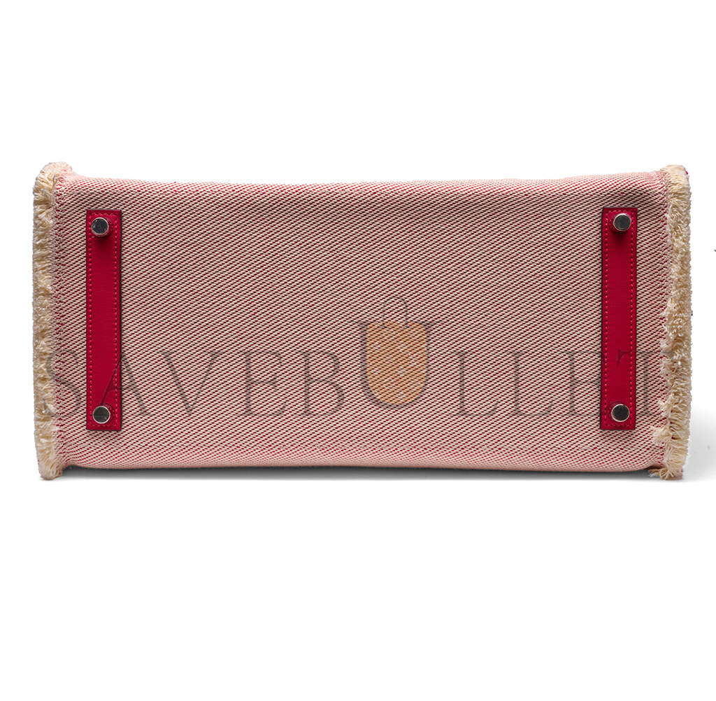 HERMÈS MASTER BIRKIN 35 SWIFT LEATHER CASE RASPBERRY CANVAS TASSELS SILVER BUCKLE H082686CK26 (35*25*18cm)