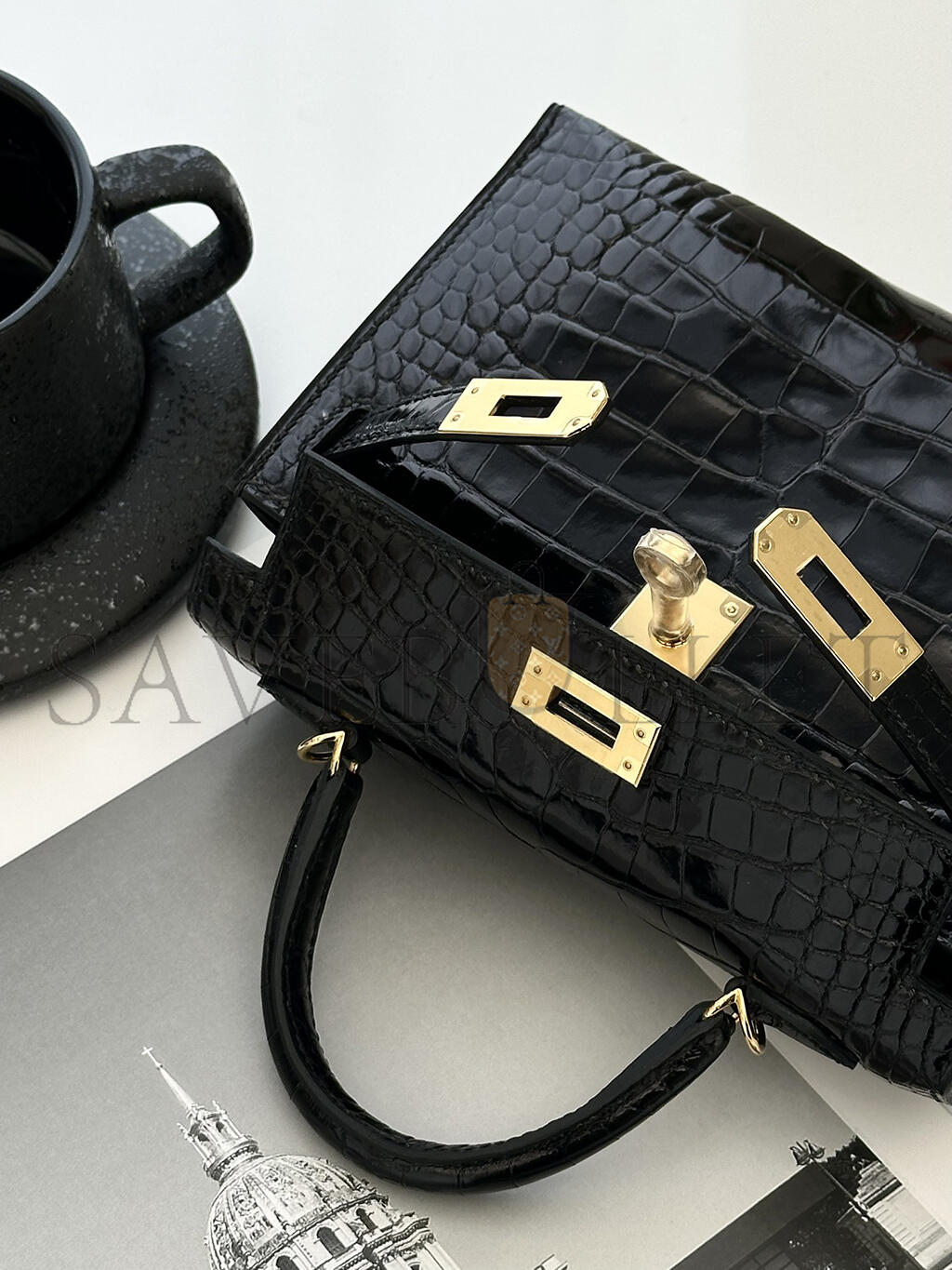 HERMÈS MASTER A SHINY BLACK ALLIGATOR SELLIER MINI KELLY 20 II WITH GOLD HARDWARE (19*12*5.5cm)