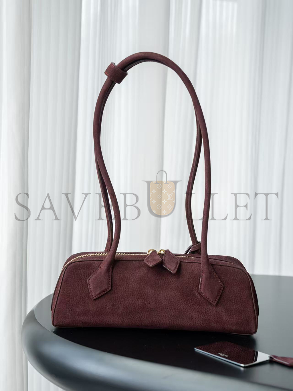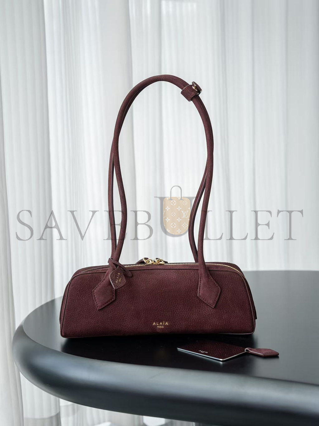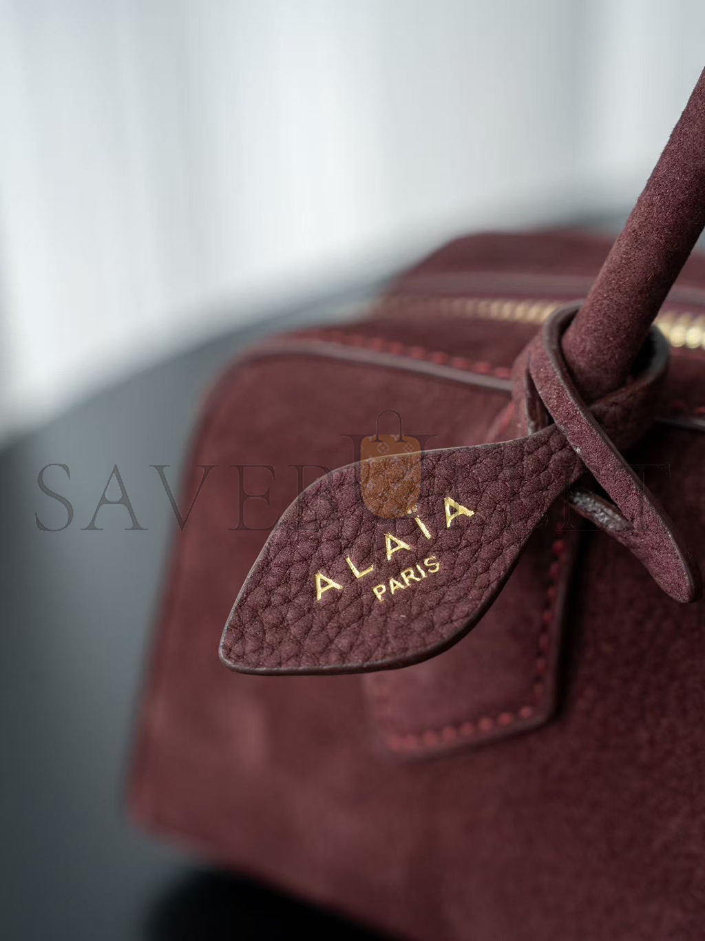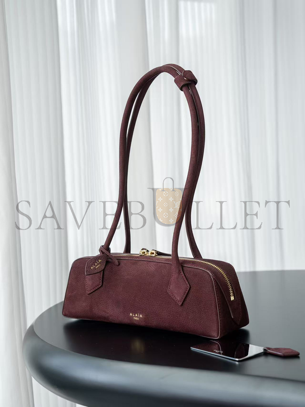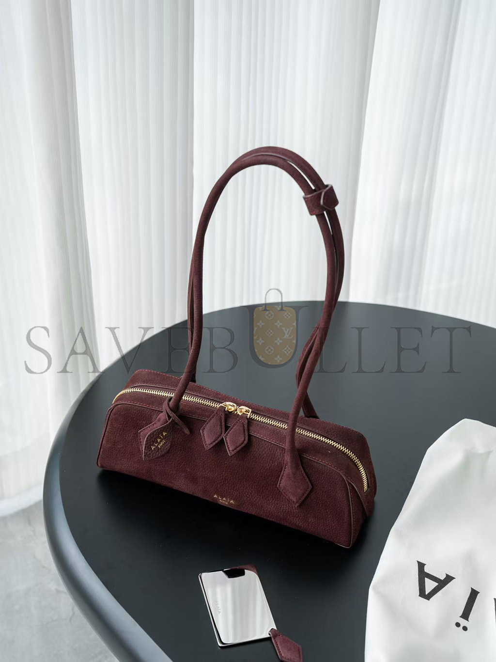 ALAÏA LE TECKEL SMALL SUEDE SHOULDER BAG BURGUNDY AA1S06033CA214 (27*9*8cm)