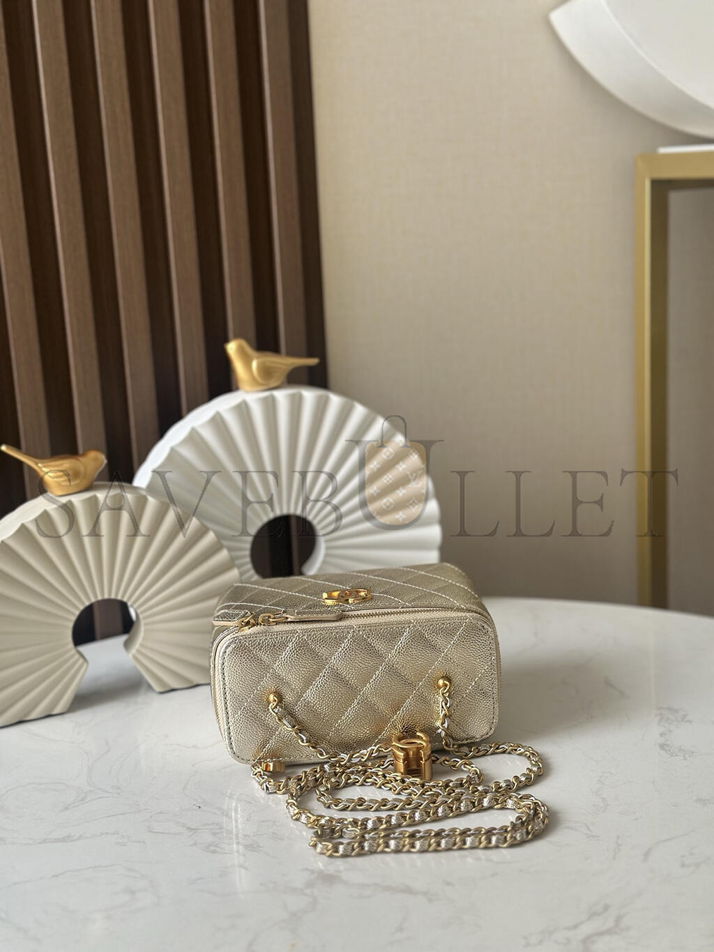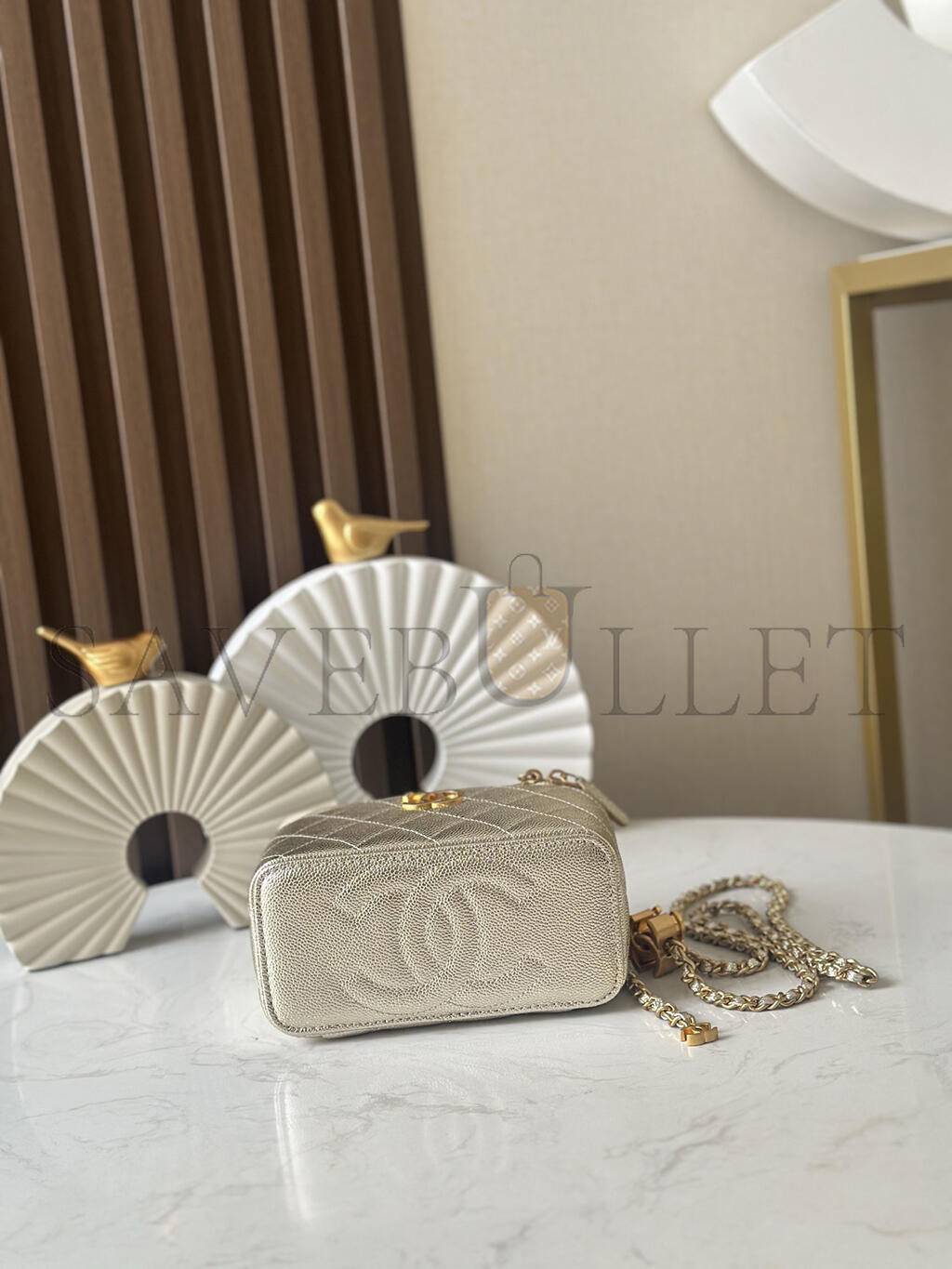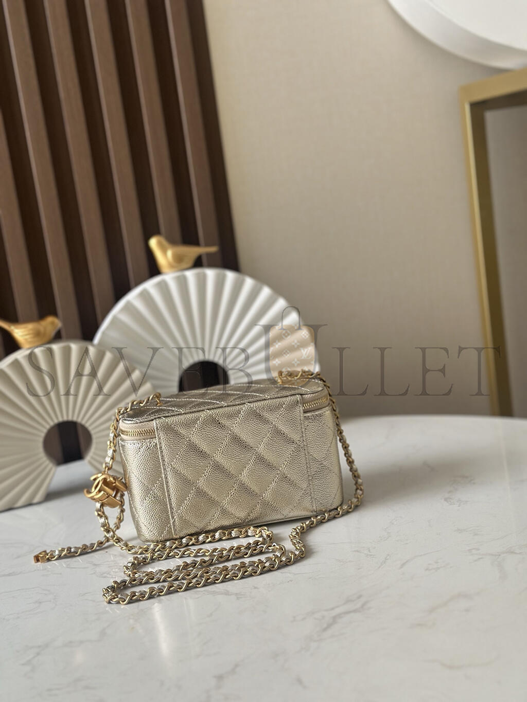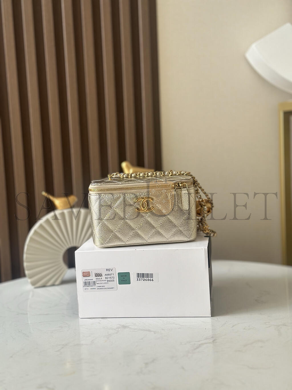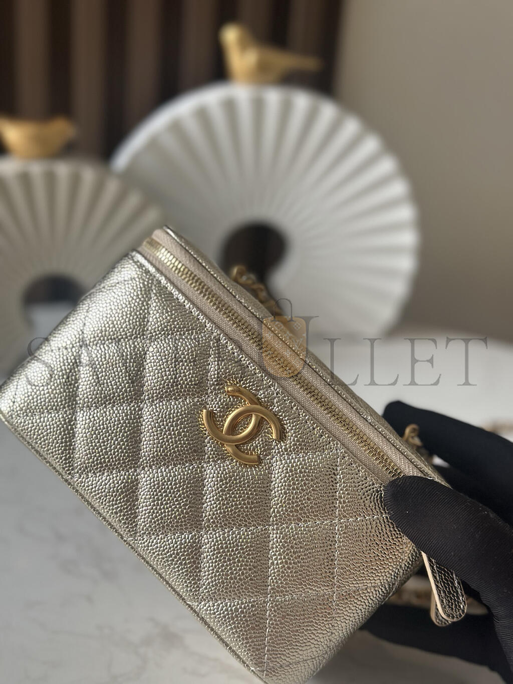 CHANEL MASTER SMALL CLASSIC VANITY CASE METALLIC CAVIAR A66071 (17*9.5*8cm)