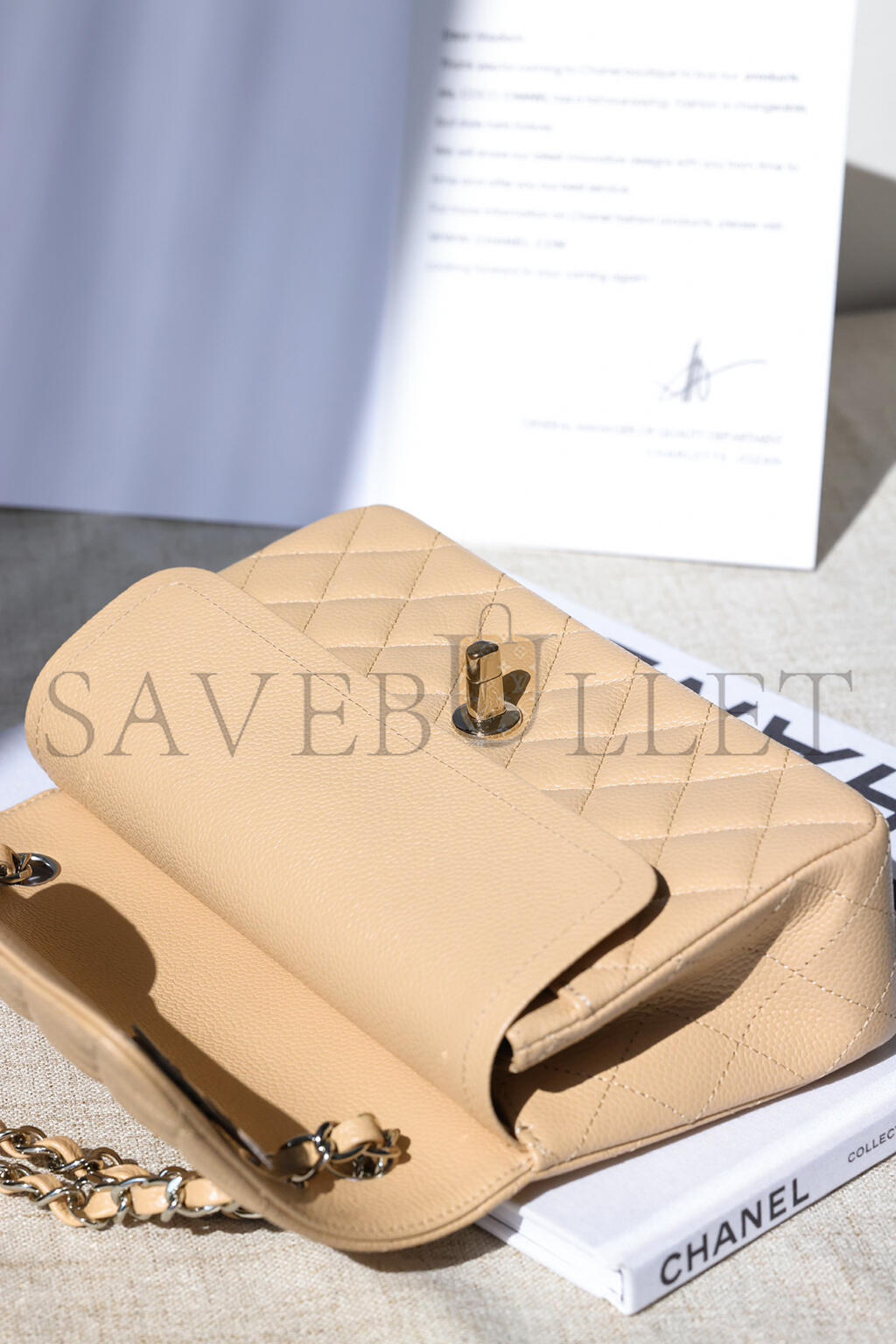 CHANEL MASTER CAVIAR QUILTED SMALL DOUBLE FLAP BEIGE (23*14.5*6cm)