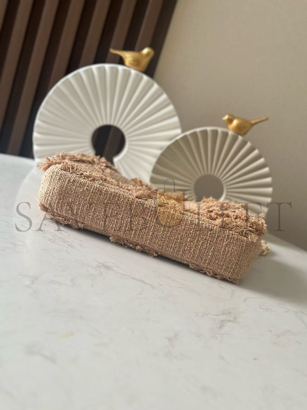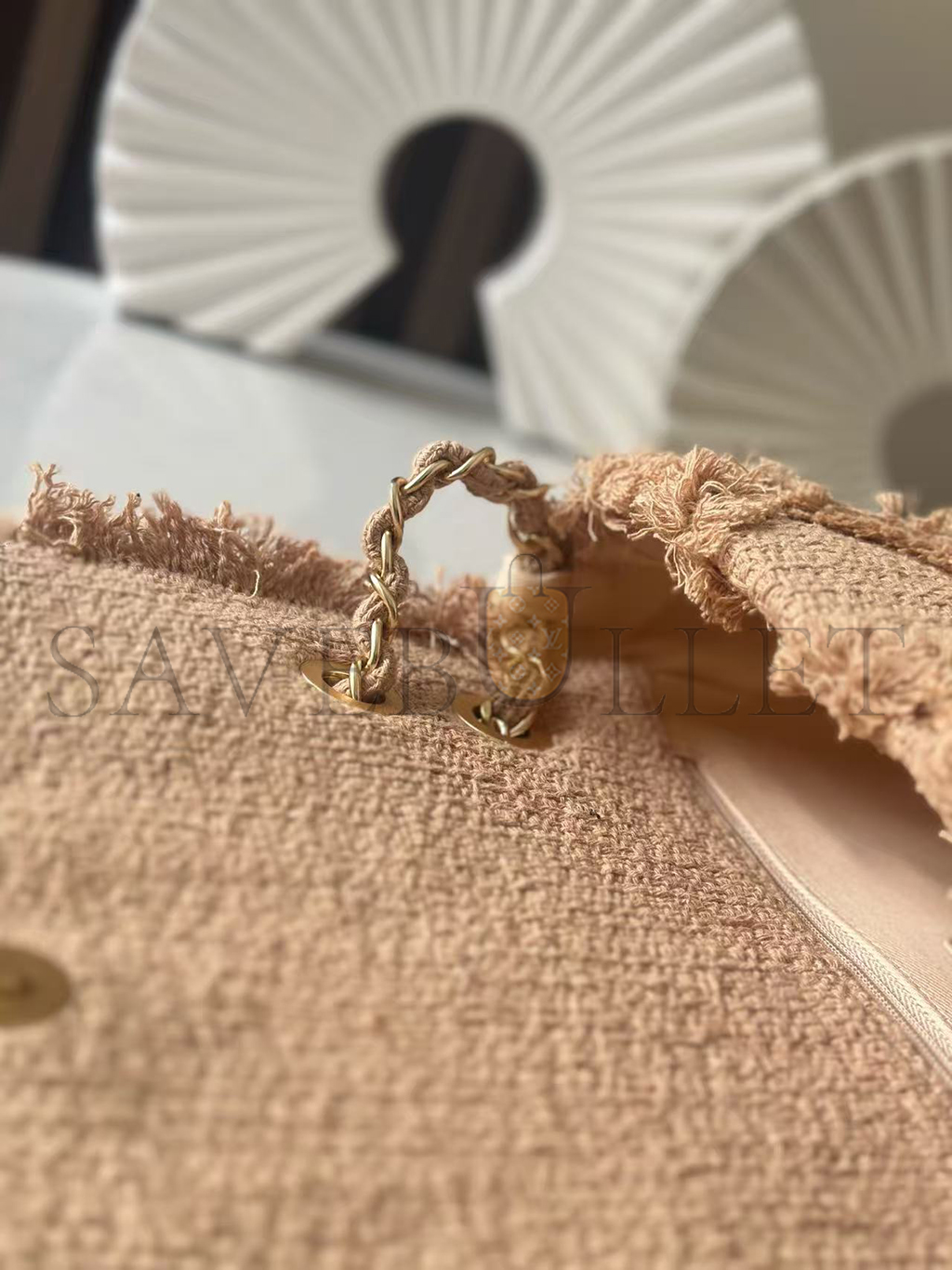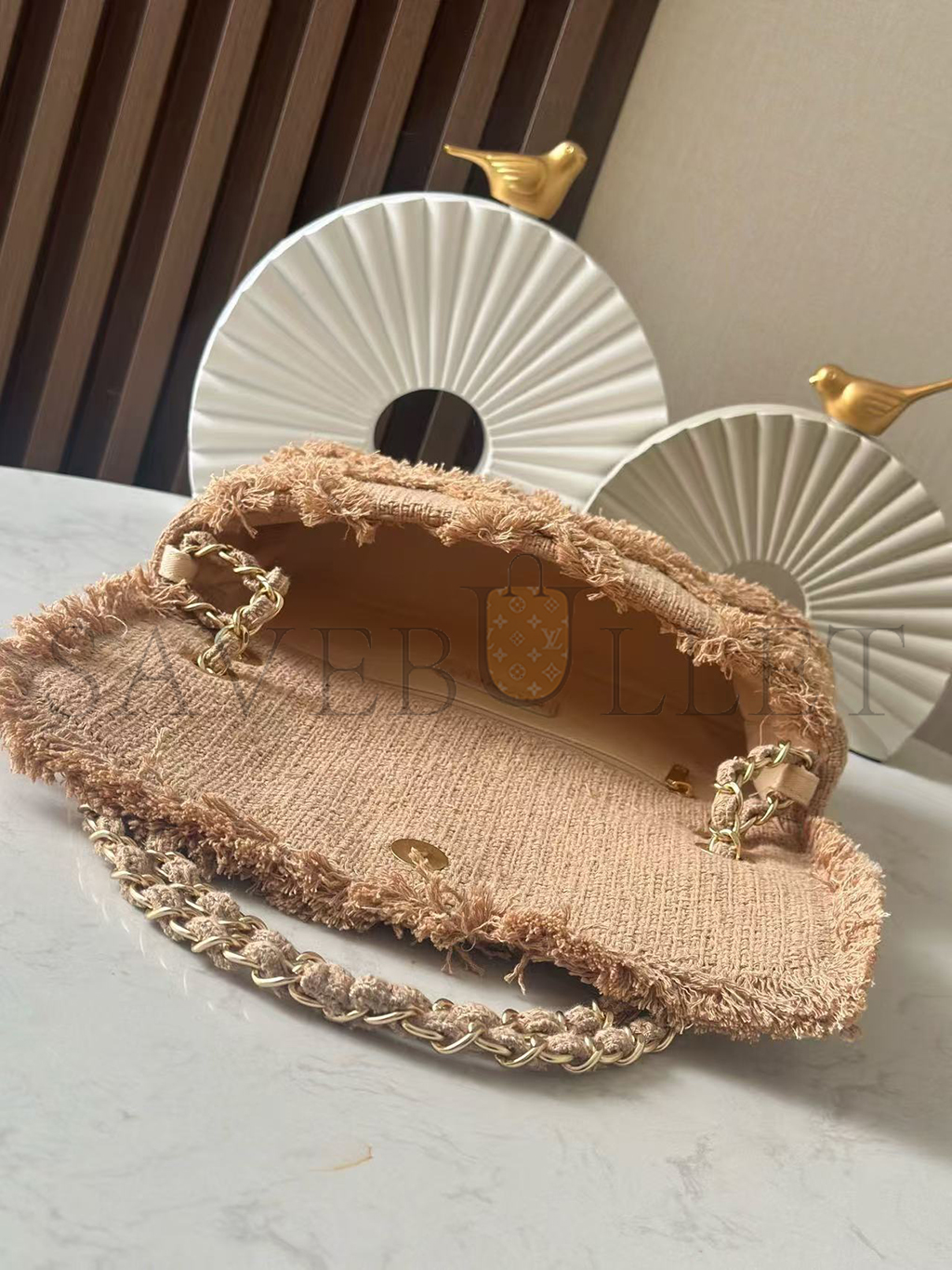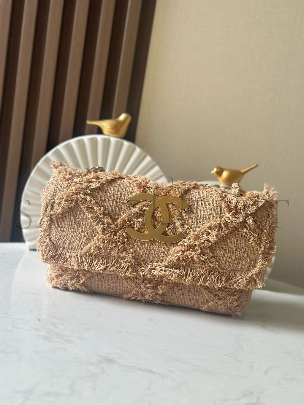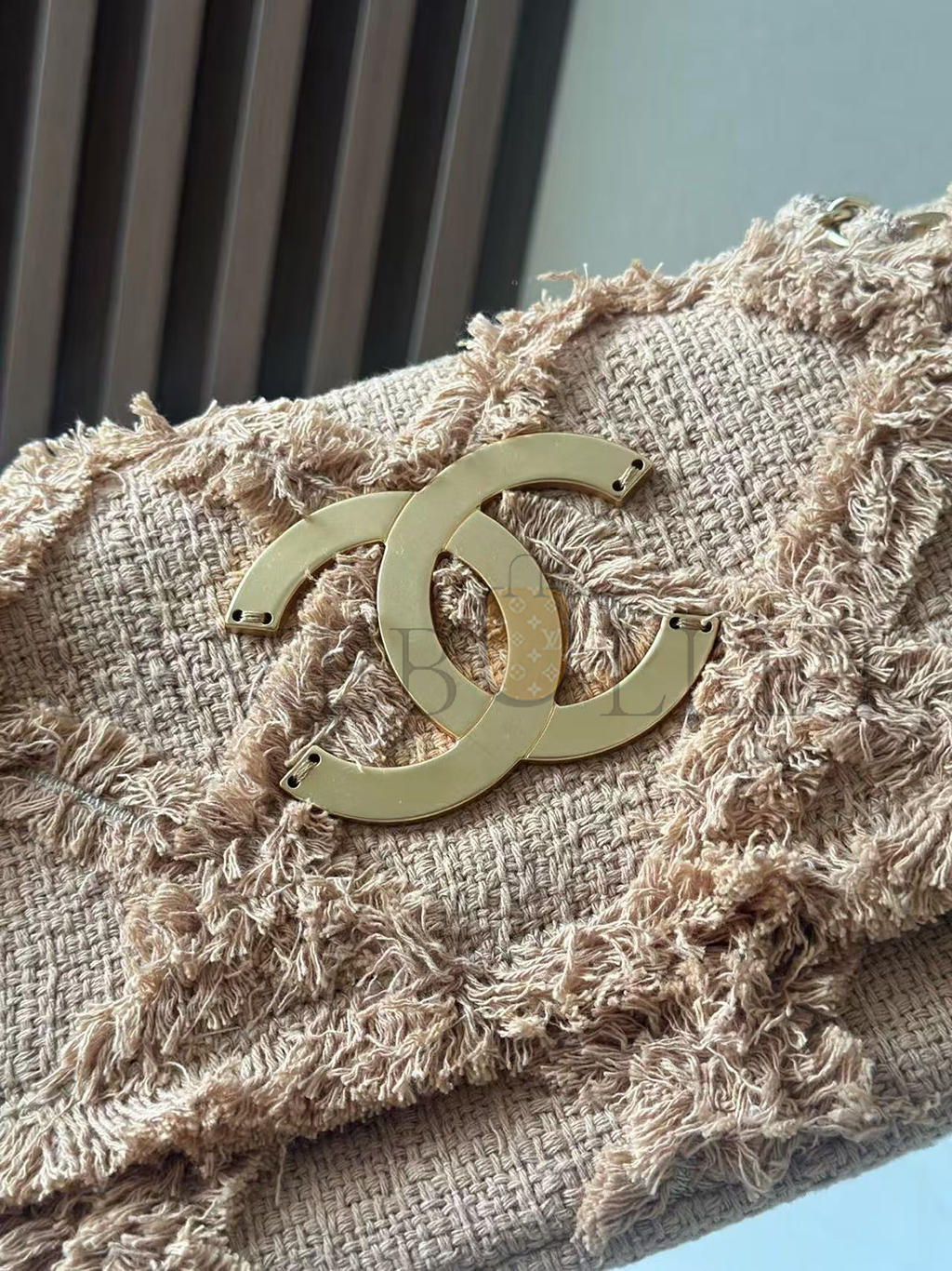 CHANEL BEIGE TWEED FRINGE NATURE FLAP BAG (26*16*5cm)