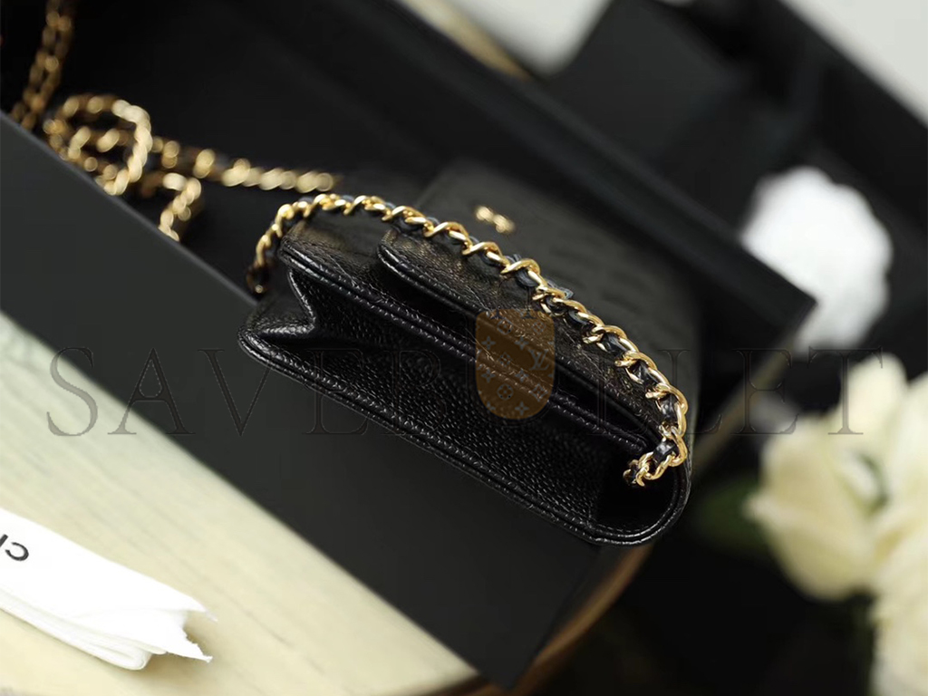 CHANEL QUILTED CAVIAR WALLET ON CHAIN WOC BLACK GOLD HARDWARE A33814 (19*12*3cm)