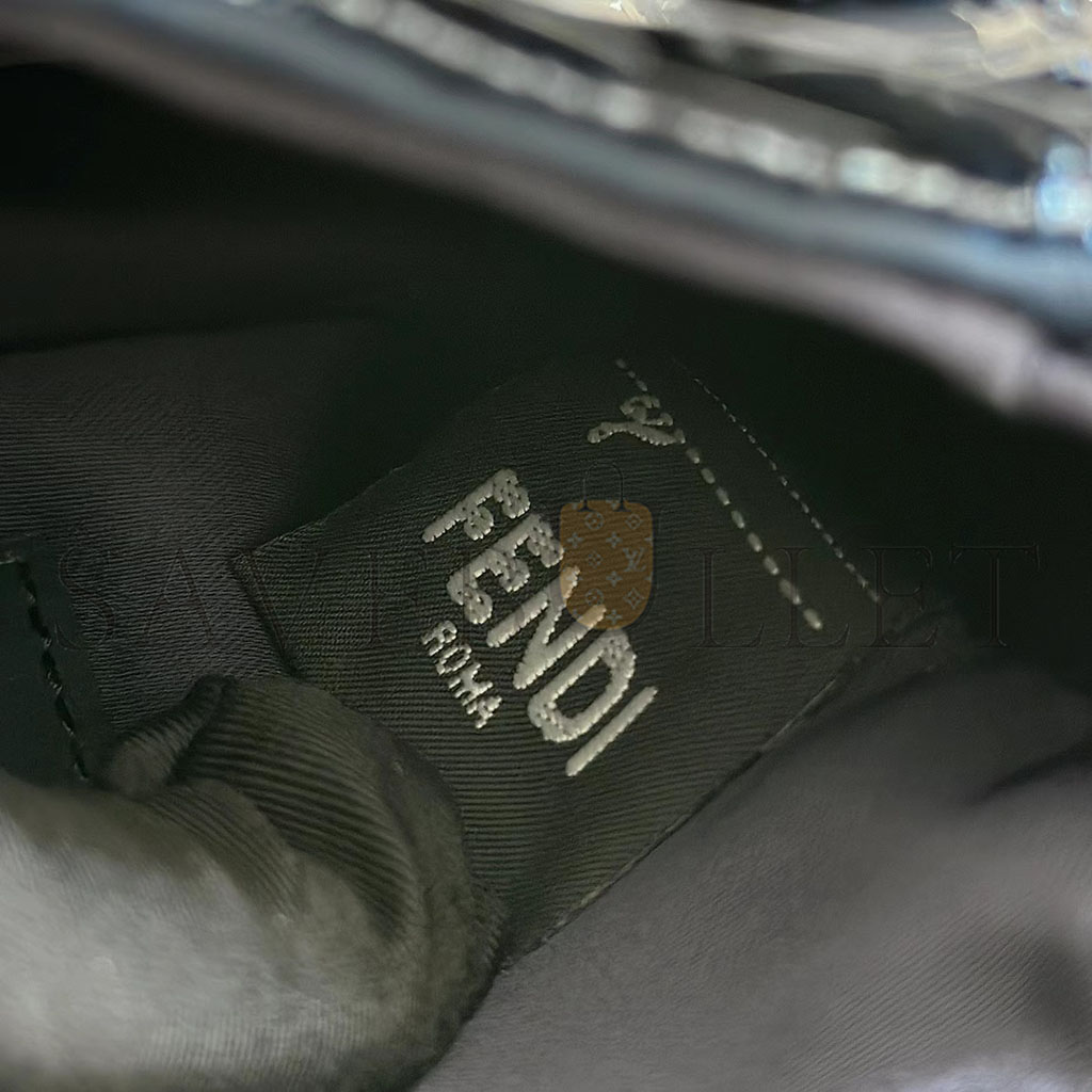 FENDI SEQUIN PAILLETTES VITELLO GRACE STRIPED MINI BAGUETTE DARK BLUE LUNAI (19*11*5cm)