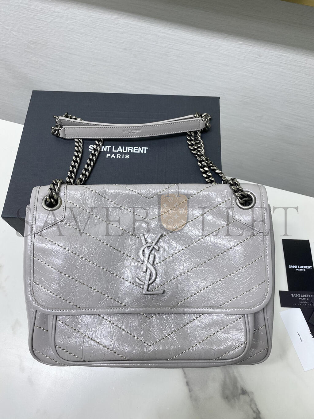 YSL NIKI MEDIUM CHAIN BAG IN CRINKLED VINTAGE LEATHER 498894008975 (28*20*8.5cm)
