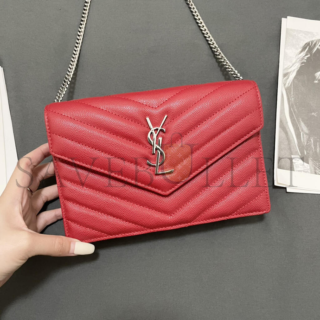YSL CASSANDRE MATELASSÉ ENVELOPE CHAIN WALLET IN GRAIN DE POUDRE EMBOSSED LEATHER 695108406611 (19*12.5*3.5cm)