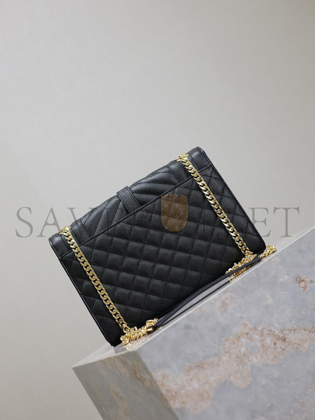 YSL ENVELOPE MEDIUM IN QUILTED GRAIN DE POUDRE EMBOSSED LEATHER 600185BOW911000 (24*17.5*6cm)