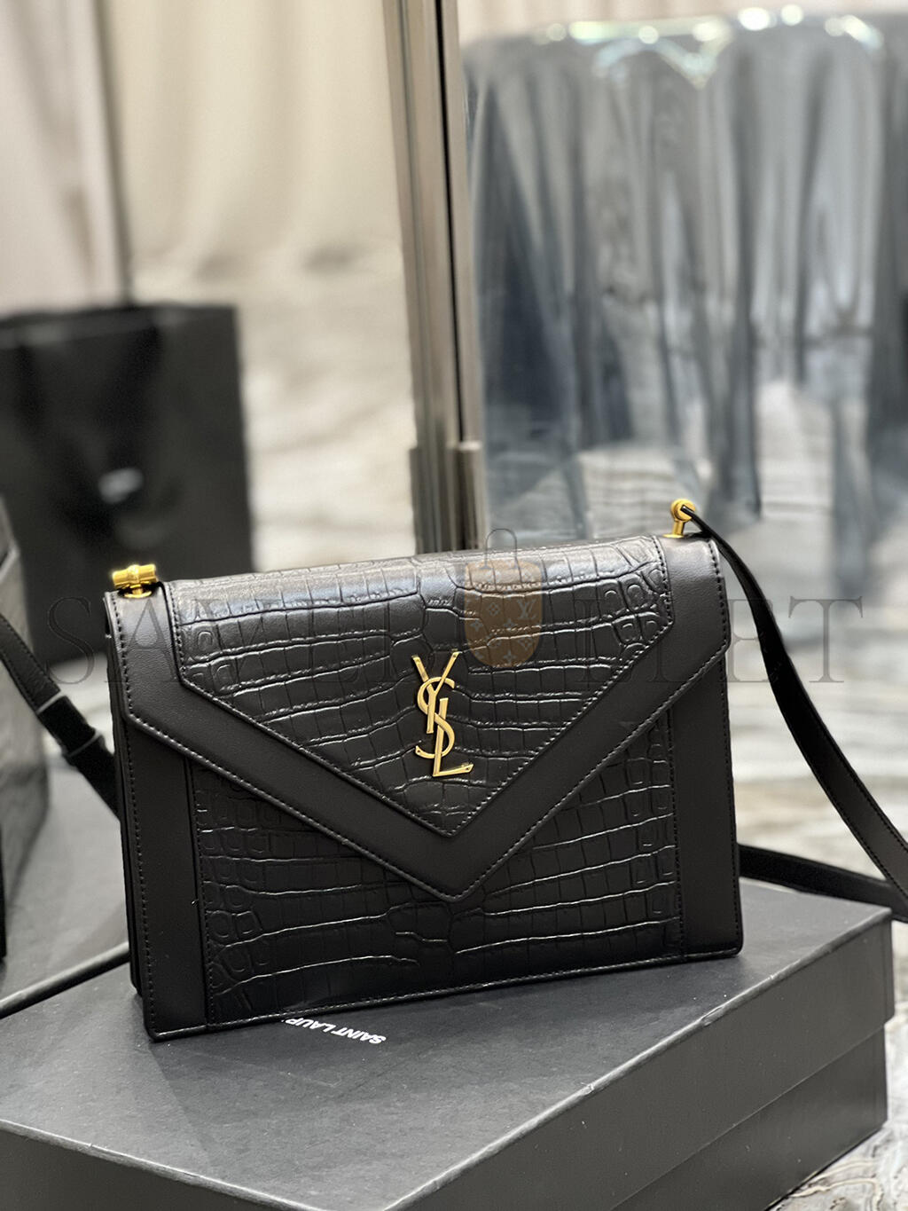 YSL GABY SATCHEL IN CROCODILE-EMBOSSED LACQUERED LEATHER AND LAMBSKIN 695724DZEUW1000 (26*18*5cm)