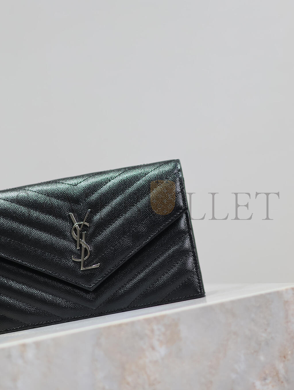 YSL CASSANDRE ENVELOPE CHAIN WALLET IN GRAIN DE POUDRE LEATHER 742920BOW021000 (19*12.5*3.5cm)