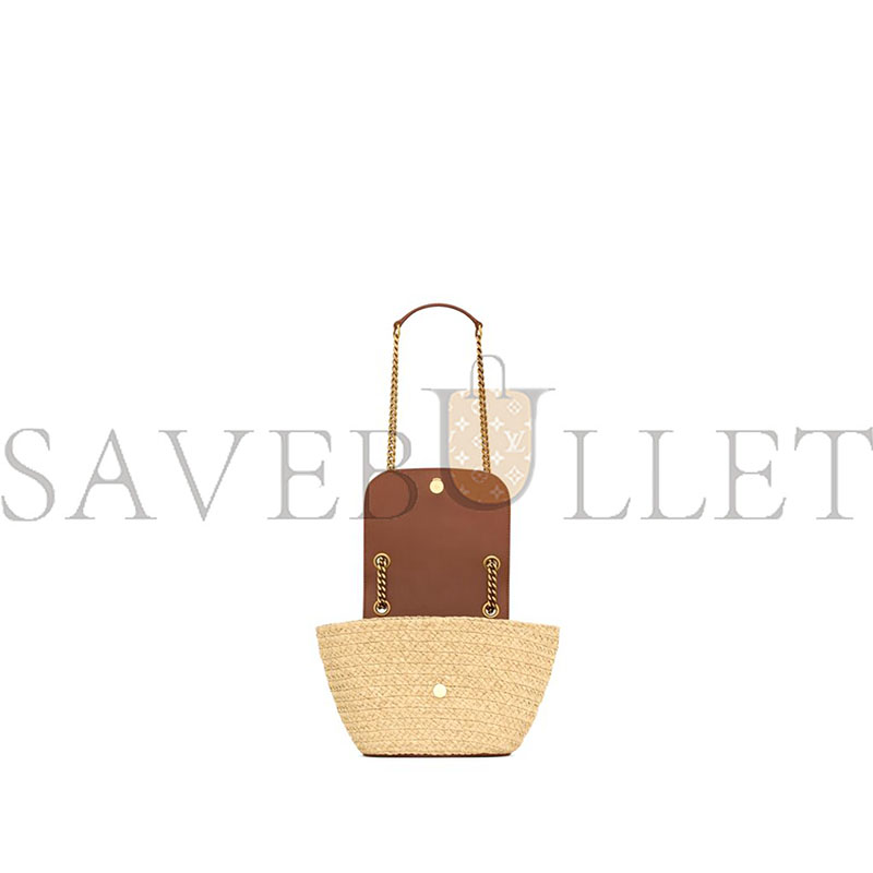 YSL MINI MANON IN RAFFIA AND VEGETABLE-TANNED LEATHER 774269GAAED9051 (23*12*6cm)