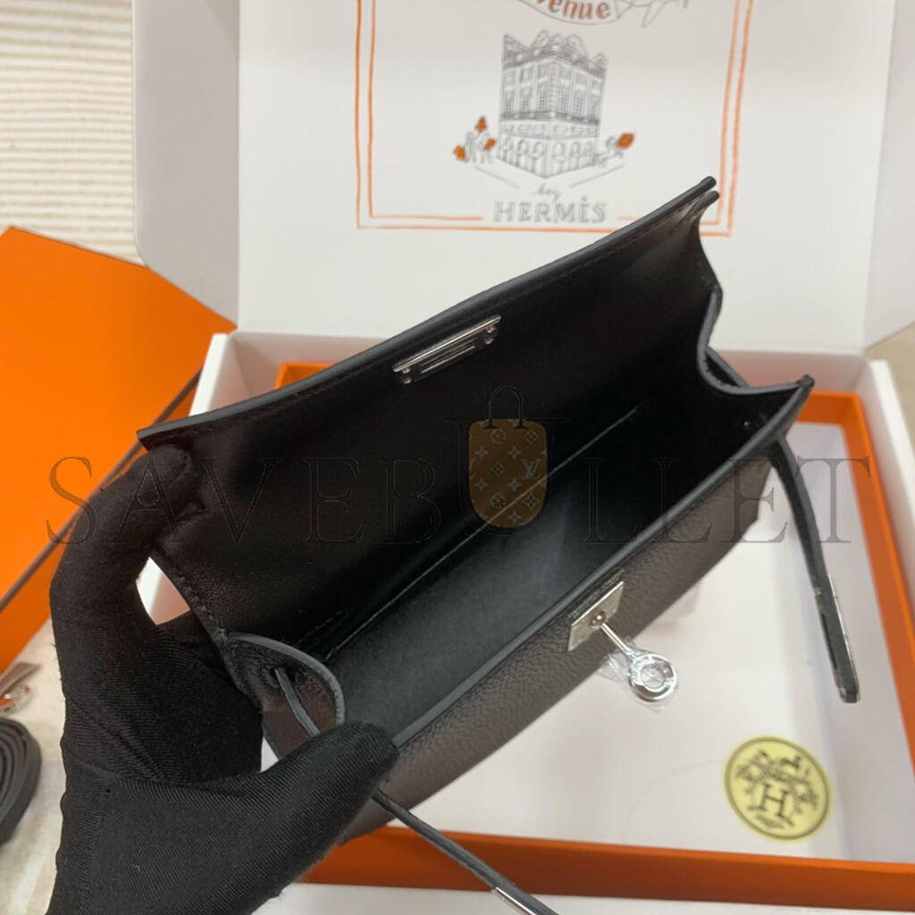 HERMÈS MINI KELLY II TOGO BLACK SILVER BUCKLE HARDWARE (19*12*5.5cm)