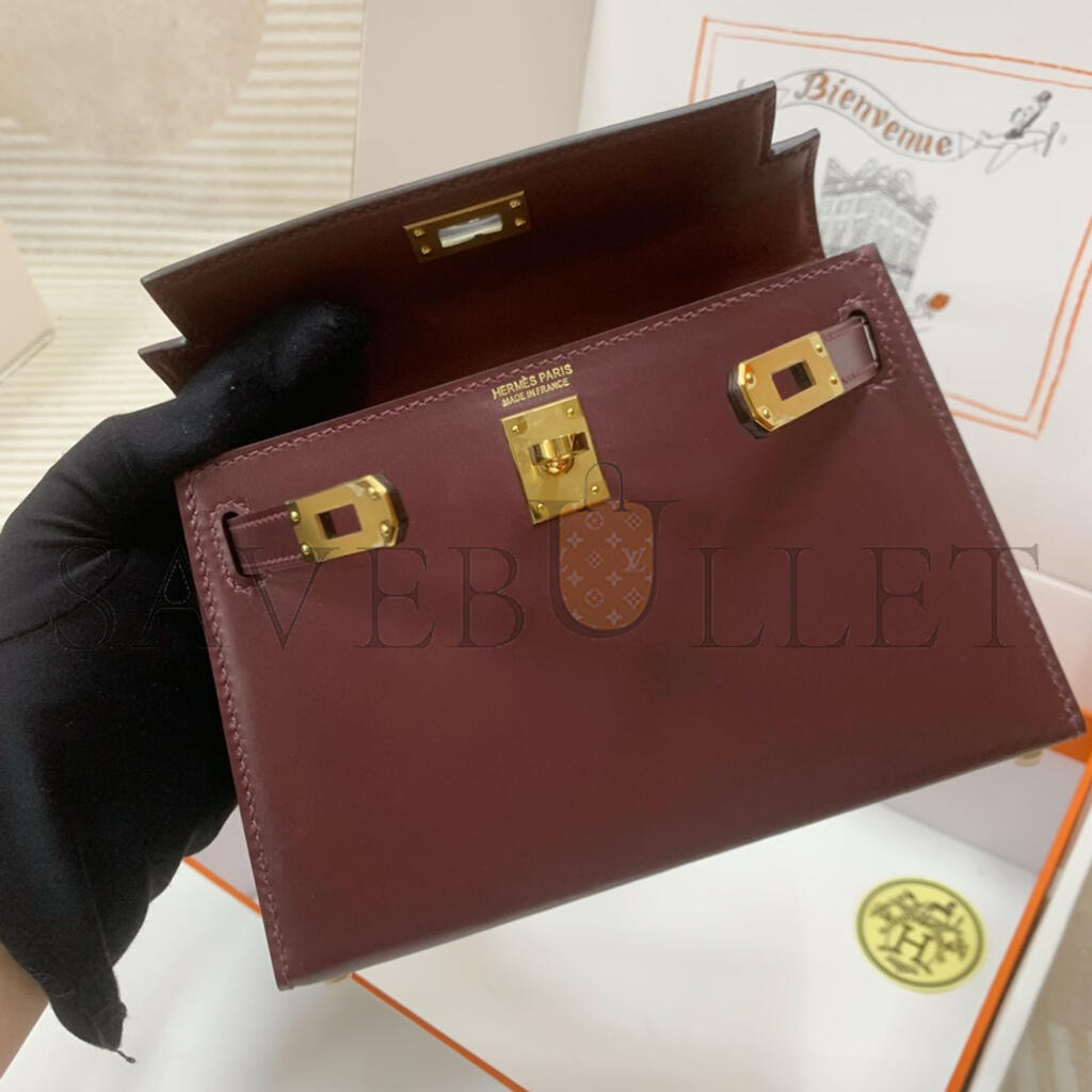 HERMÈS MINI KELLY II BOX BURGUNDY GOLD HARDWARE (19*12*5.5cm)
