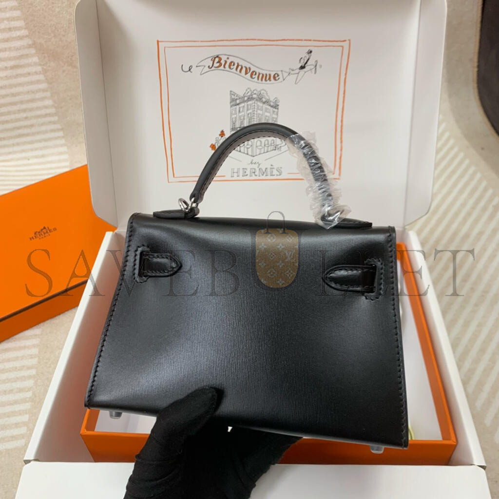 HERMÈS MINI KELLY II BOX LEATHER  WITH PALLADIUM HARDWARE (19*12*5.5cm)