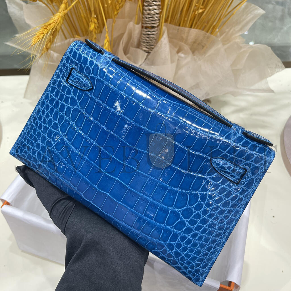 HERMÈS MASTER MINI KELLY POCHETTE MATTE ALLIGATOR CROCODILE BLUE ZANZIBAR (22*14*7cm)
