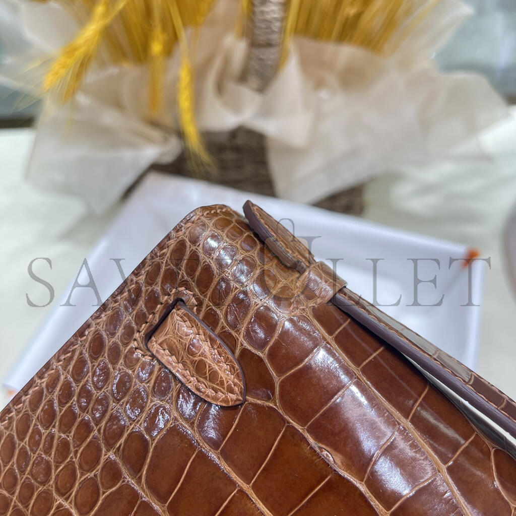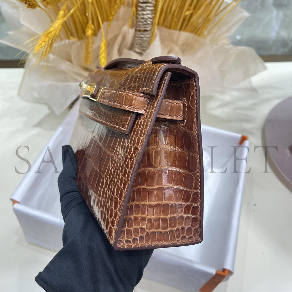 HERMÈS MASTER PAIN DÉPICE ALLIGATOR KELLY POCHETTE WITH PERMABRASS HARDWARE (22*14*7cm)