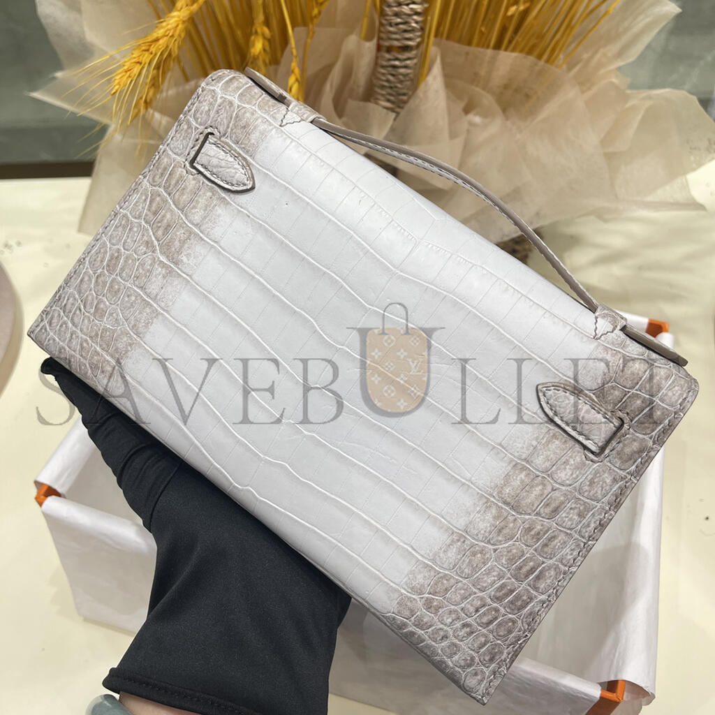 HERMÈS MASTER MINI KELLY POCHETTE HIMALAYA MATTE CROCODILE (22*14*7cm)
