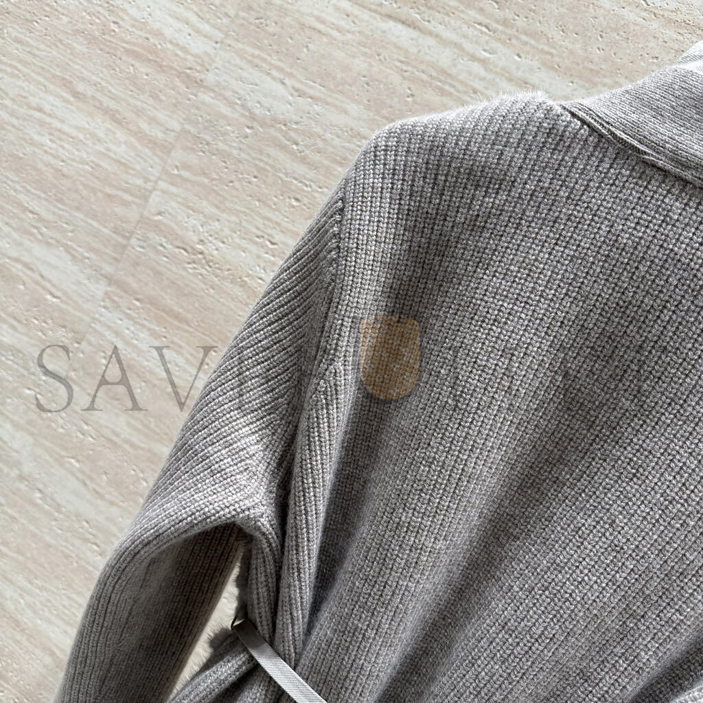 23.5 x 12 x 4.3 cm(Length x Height x Width)MistyEmbossed grained cowhide leatherGrained cowhide-leather trimMicrofiber liningLight gold-toned hardware..