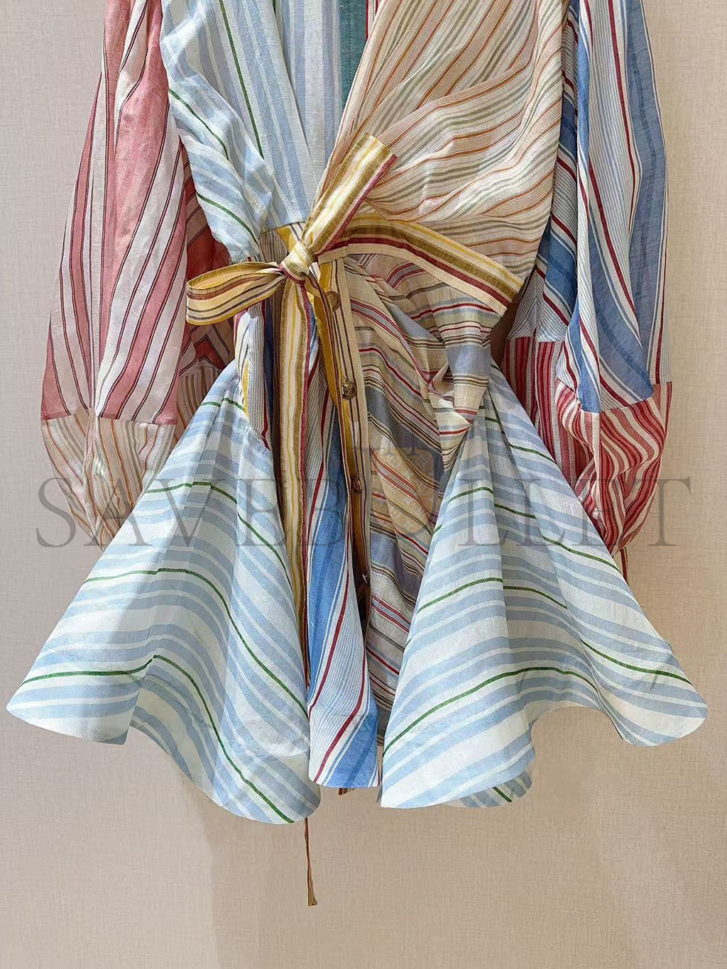 ZIMMERMANN REBELLION STRIPED LINEN AND SILK MINI DRESS 7028DC261