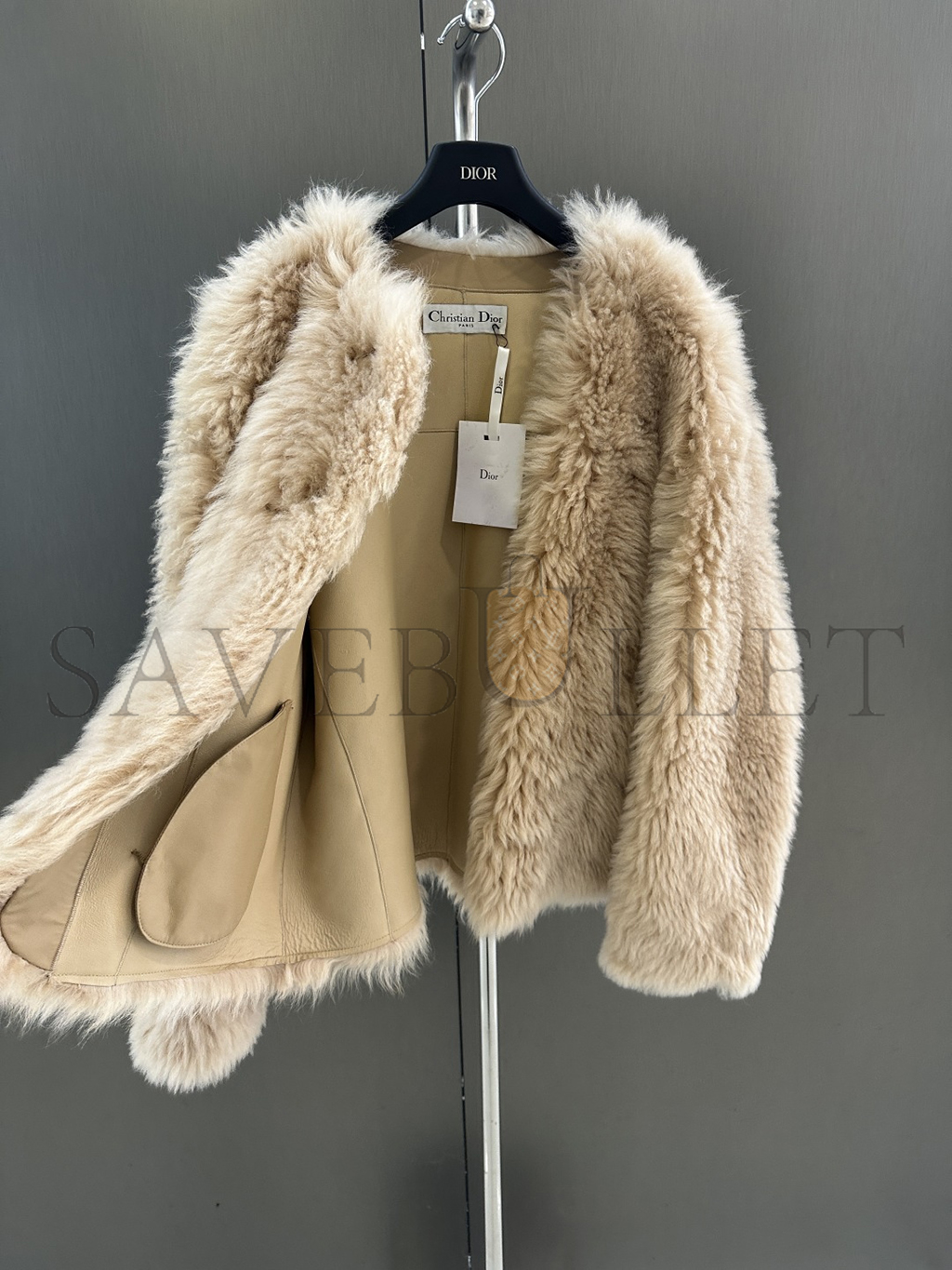 MAX MARA COLLARLESS SHEARLING JACKET