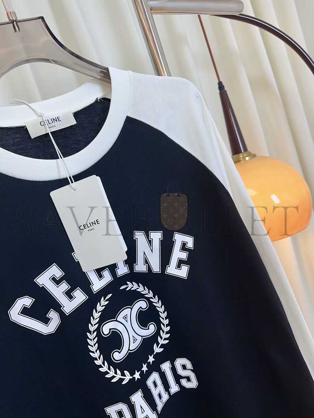CELINE LOOSE T-SHIRT IN COTTON JERSEY BLACK OFF WHITE RX09Y0I07.38OW