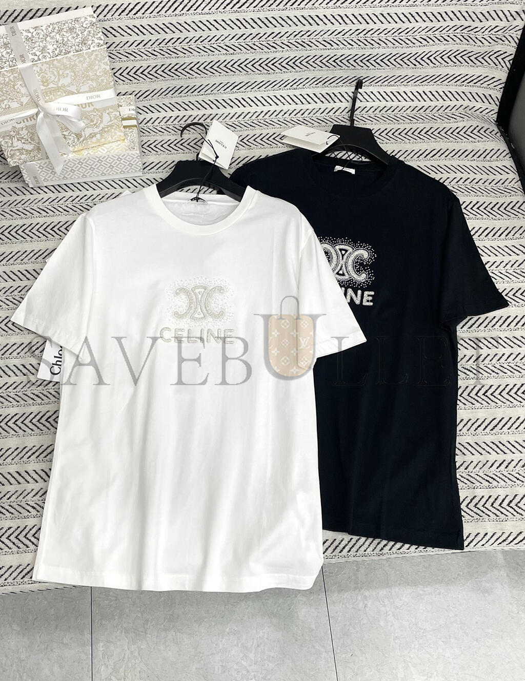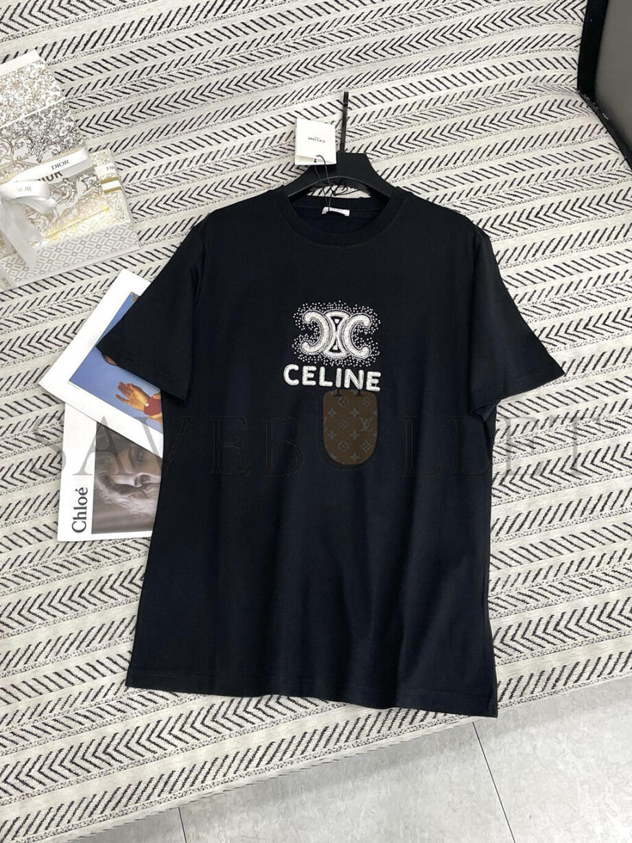 CELINE HEAVY INDUSTRY ARC DE TRIOMPHE LETTER BEADED T-SHIRT