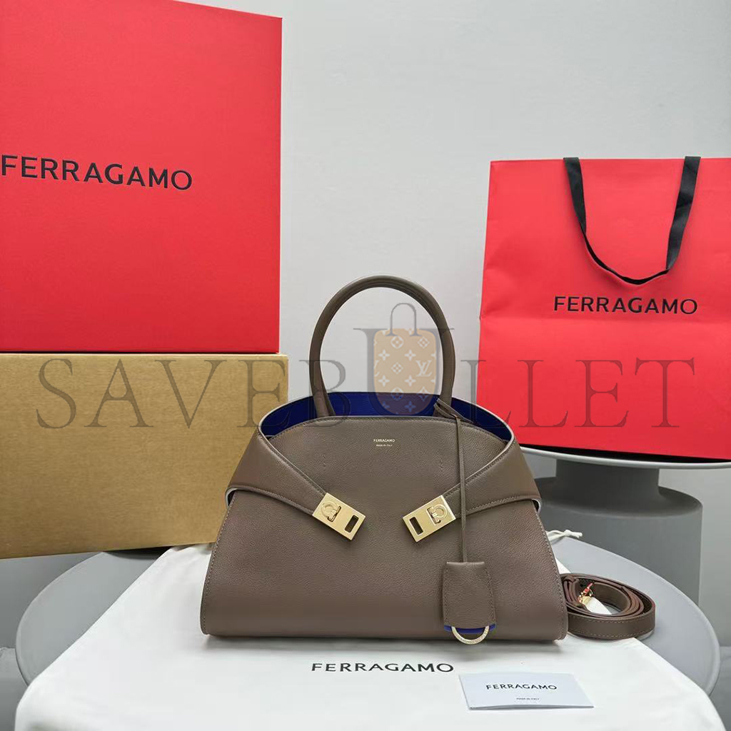 FERRAGAMO SMALL HUG LEATHER TOTE BAG 215608 (31.5*22*19cm)