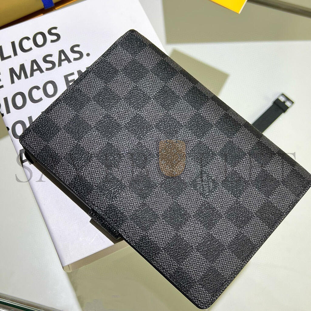 Damier Graphite canvas, black leather trimming