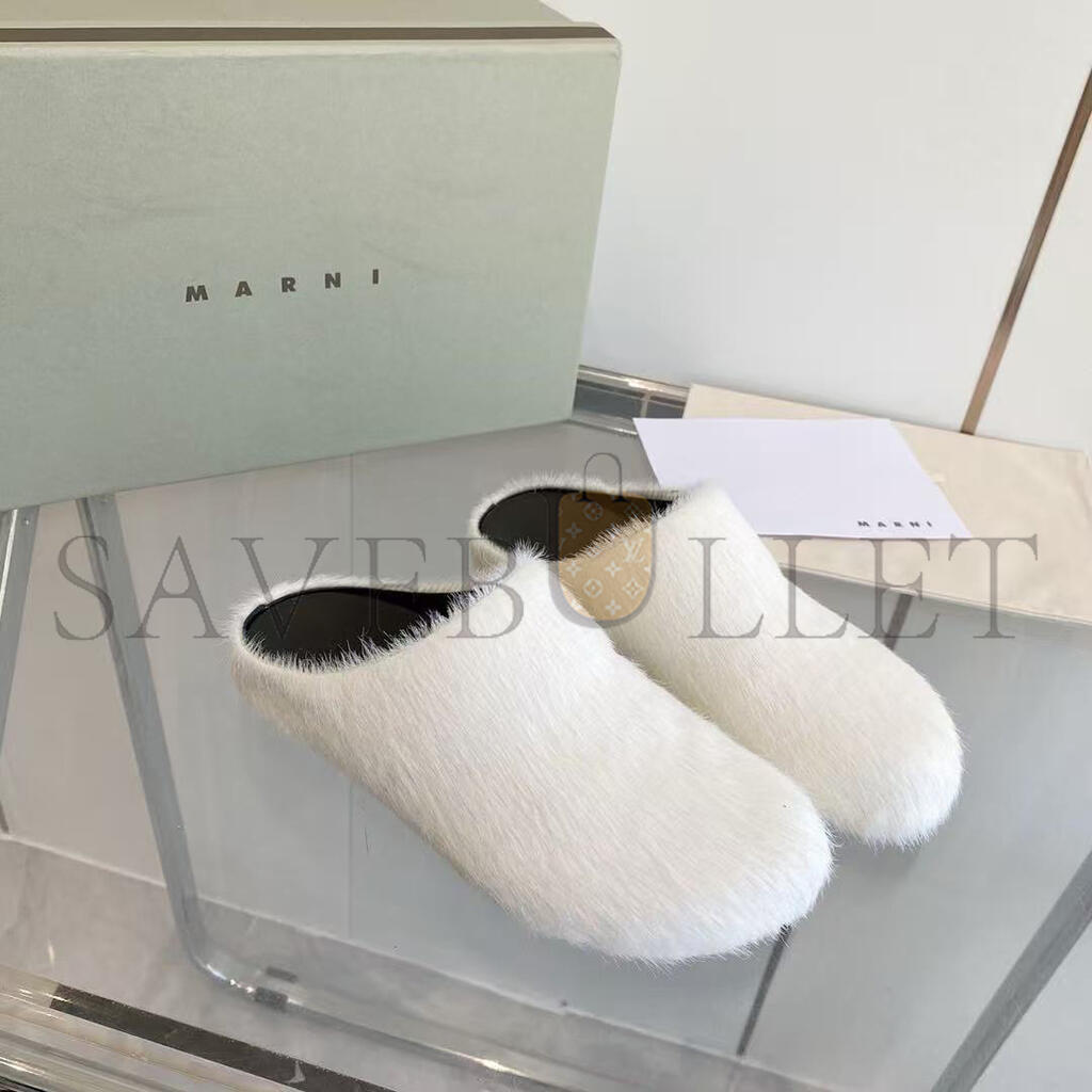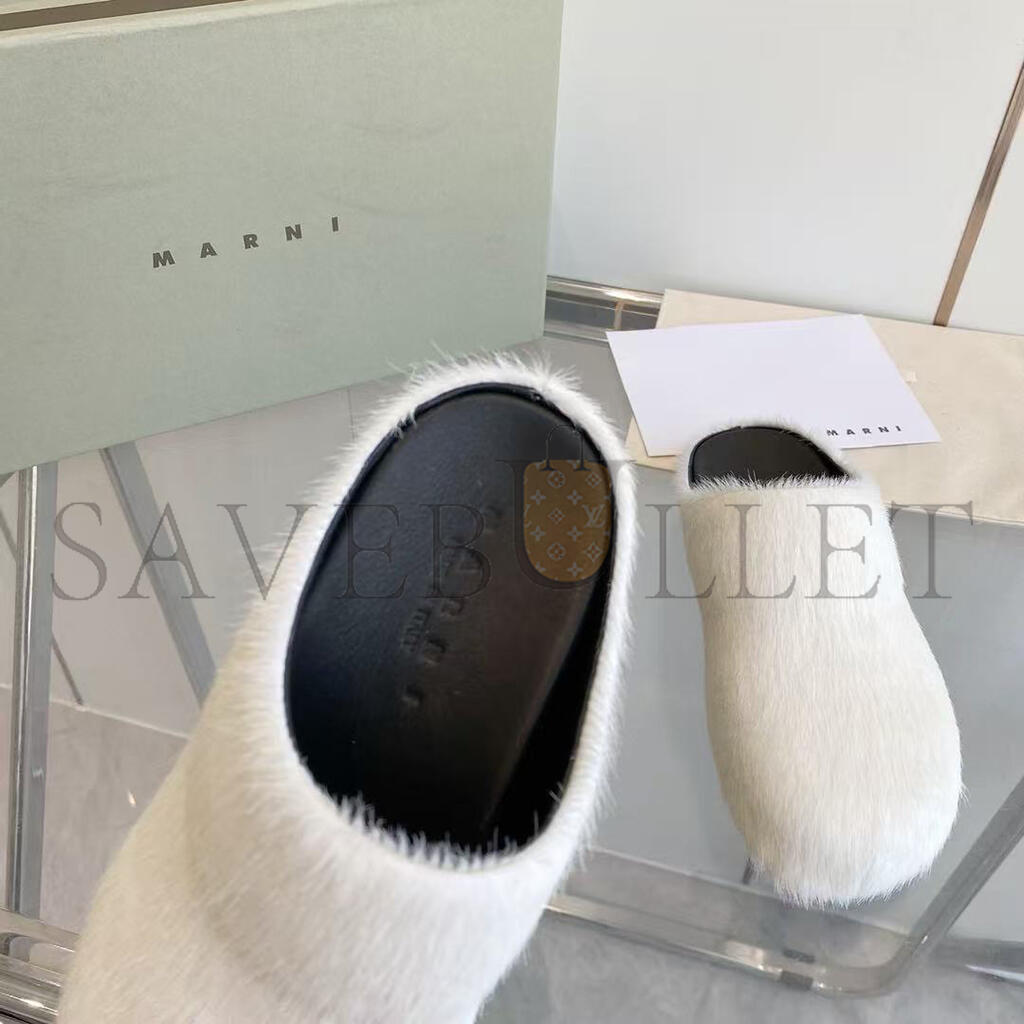 MARNI FUSSBET SABOT CALF-HAIR SLIPPERS