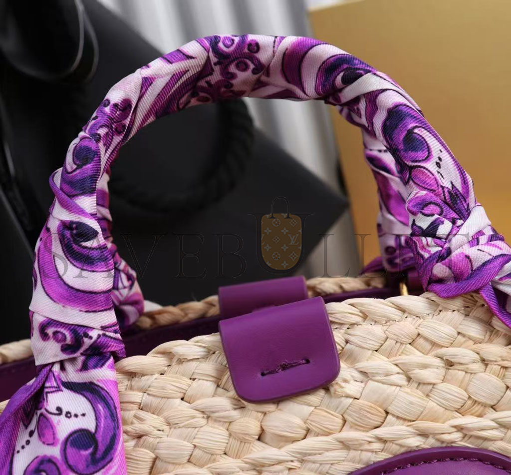 Leather handles wrapped in printed twill, removable and adjustable leather shoulder strap